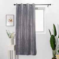 These silver foiled striped curtains offer a stylish blackout option for any space.