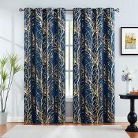 Opulent blackout curtains with gold foil branches offer full light control and customizable size options.